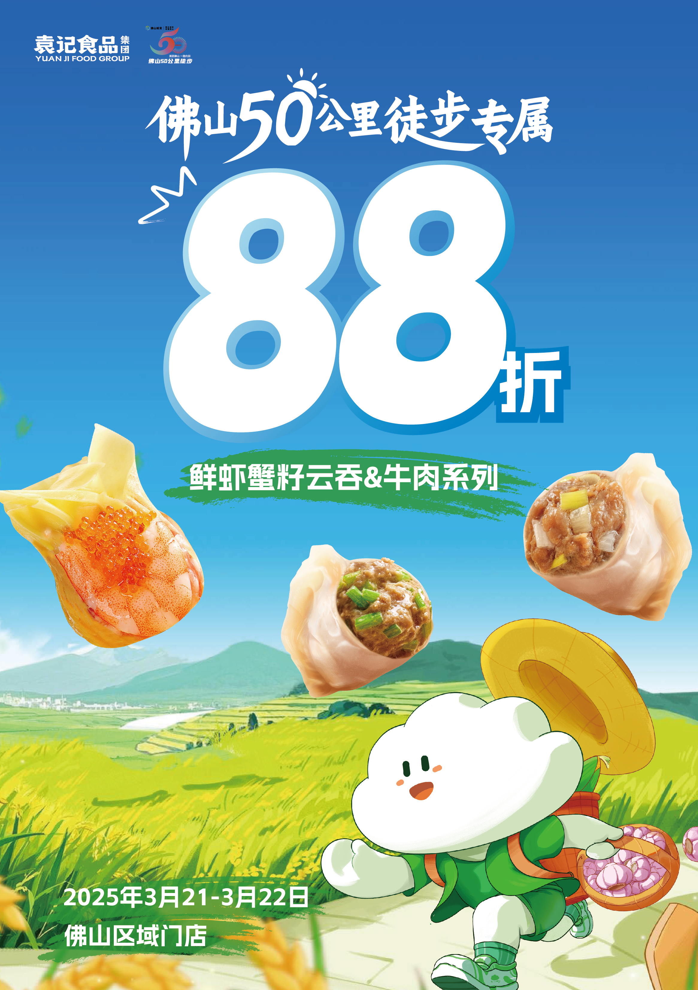 2025佛山50公里徒步活动“美丽佛山,一路向前”将于3月22日欢乐启程。袁记云饺携多重惊喜助阵,分别在南海线、禅城线设有美食摊位,更在终点世纪莲体育中心准备了打卡抽奖活动。此外,袁记云饺佛山区域门店还有熟食云吞优惠,用美味解锁徒步新玩法,快来和袁记云饺共赴春日活力之旅吧!